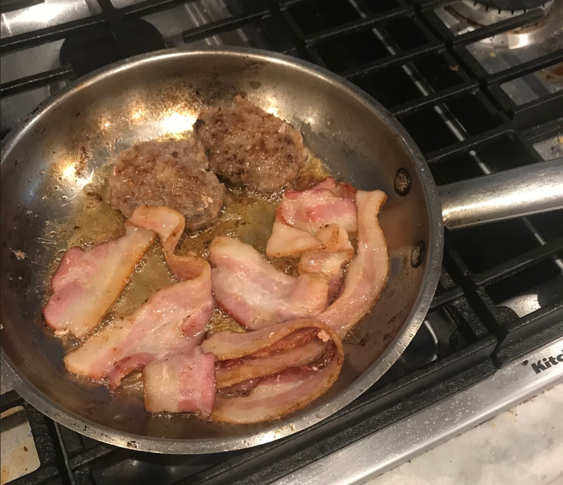 Cooking some breakfast before two tests. One’s biochemistry, and the other’s sociology. I’m a little aprehensive, but we’ll see how it goes. I studied hard, so hopefully it goes well. I’m going to start dating this stuff so I can go back and see what I was doing later on.